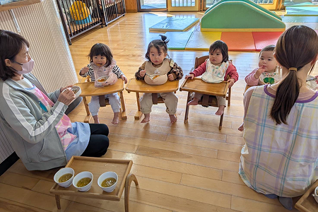 子どもの食(特に緑の野菜、根菜、いも類、海藻、魚や肉など、子どもたちが喜んで食べる給食)にとりくむ保育